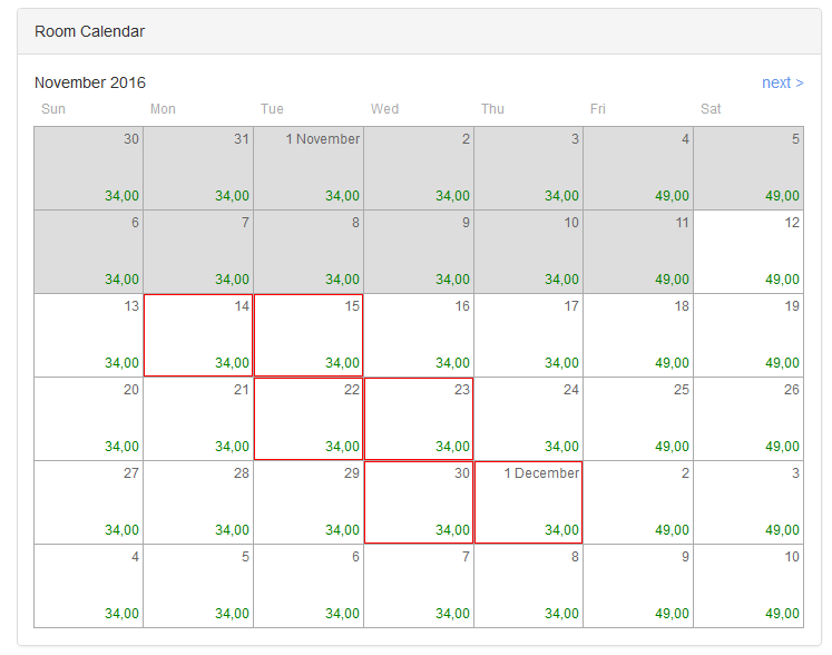 Room Management with Custom Price Calendar is a simple way to custom your room price for special date like weekend price, holiday price, and other event.